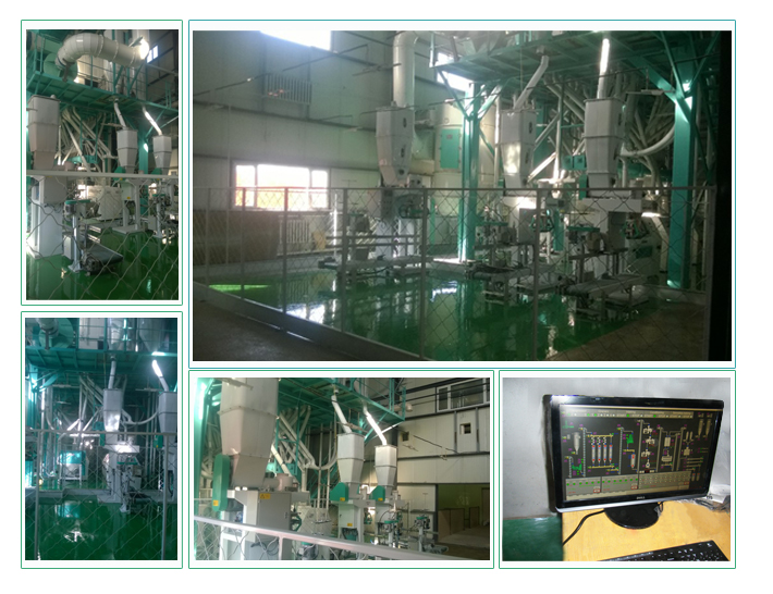 We have installed a 80T/24h wheat milling project in Mongolia of Central Asia. The pre-cleaning adopts one sieving and one air suction; workshop cleaning adopts two sievings, two scourings, two destonings, two dampenings, three magnetic separatings, one wheat mixing, two air suctions and one color sorting. This technology is completely proper for local wheat cleaning. Milling technology adopts five full automatic pneumatic roller mills, two plansifters, one purifier, one bran finisher, one micro feeder, four electronic packing scales. The whole production line adopts steel structure and full automatic control.